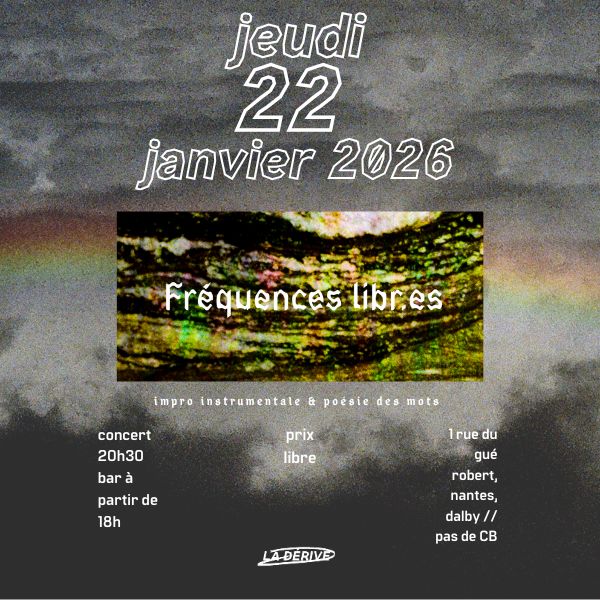Jeudi 22 janvier, concert de musique improvisée à … Lire la suite Jeudi 22 janvier 2026 :FRÉQUENCES LIBR·ES +