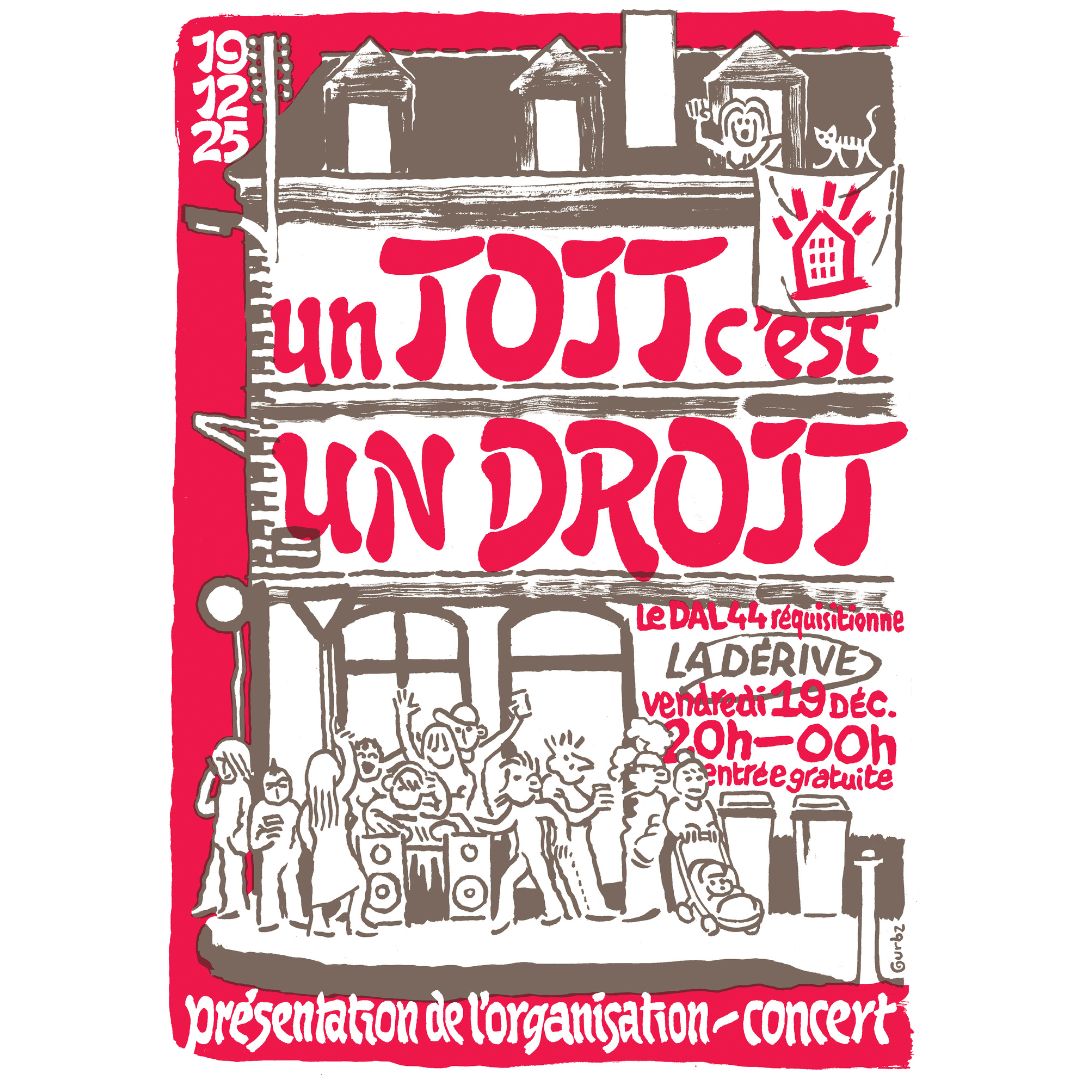 Le DAL 44 réquisitionne la Dérive ! 20h-00h ON REQ … Lire la suite Vendredi 19 décembre 2025 : Le DAL réquisitionne la Dérive !