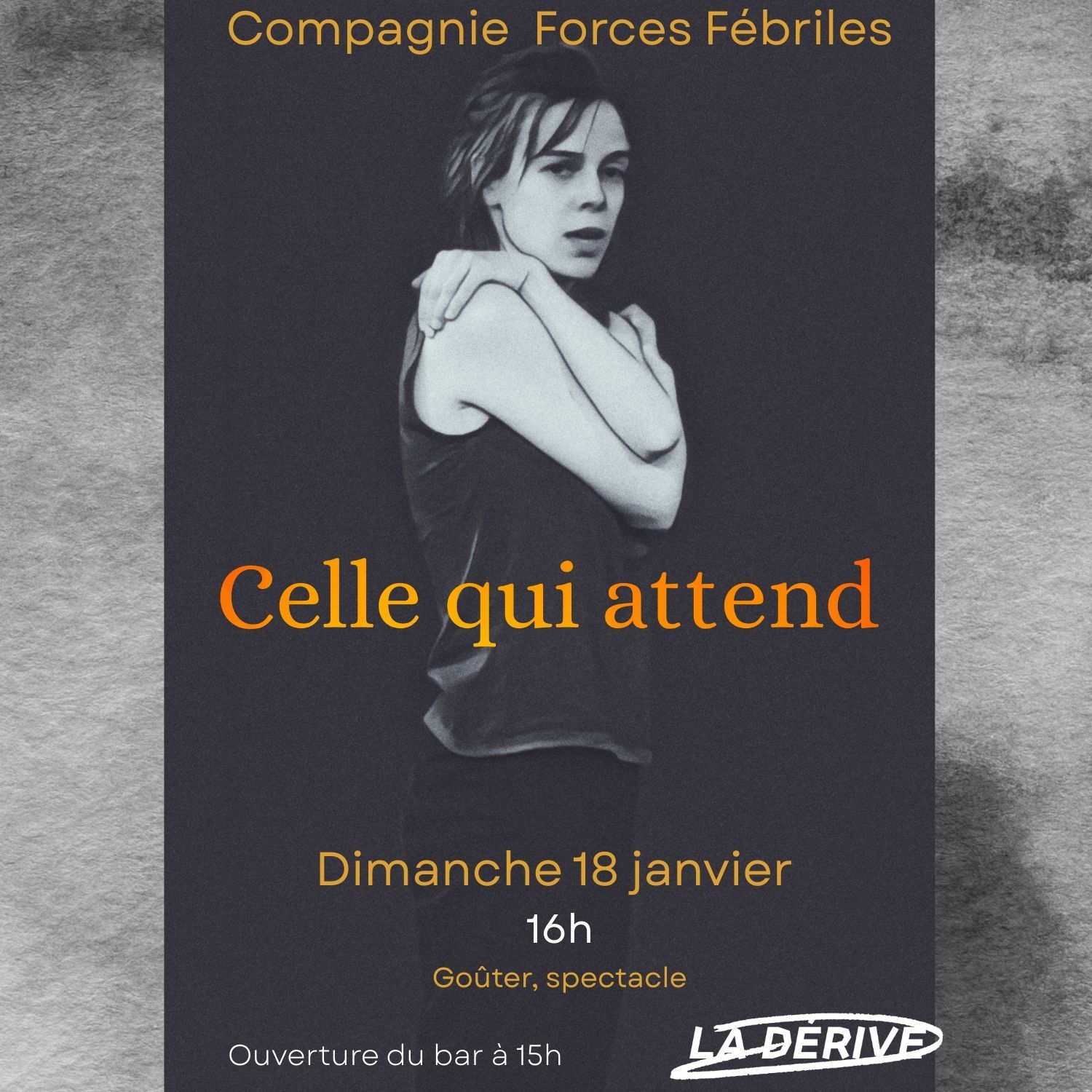 – Spectacle à 16h (prix libre)– Ouvert … Lire la suite Dimanche 18 janvier 2026 :Celle qui attend – Cie Forces Fébriles